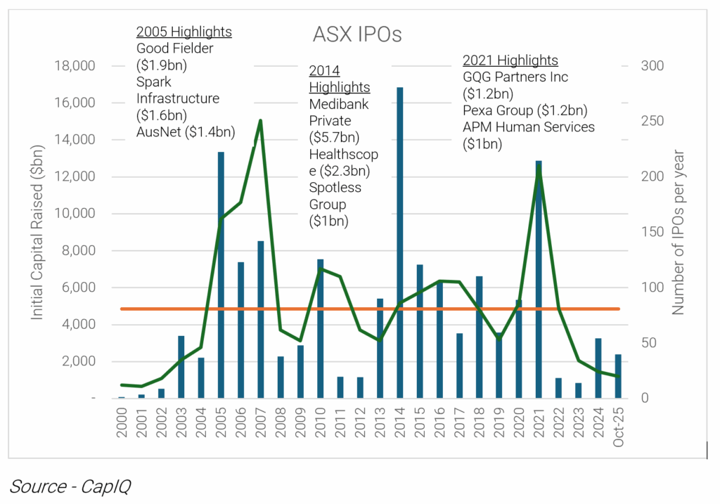 However, that only addresses the PE side. In terms of listings and compliance hurdles, the ASX announced in the middle of the year that it is trying to address the compliance burden by offering a fast-track program. We are yet to see this in action, but we do have high hopes that this can provide a steady pipeline for future IPOs.