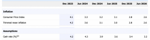 Confirming that narrative, here are the RBA’s current inflation and cash rate assumptions for the next couple of years: